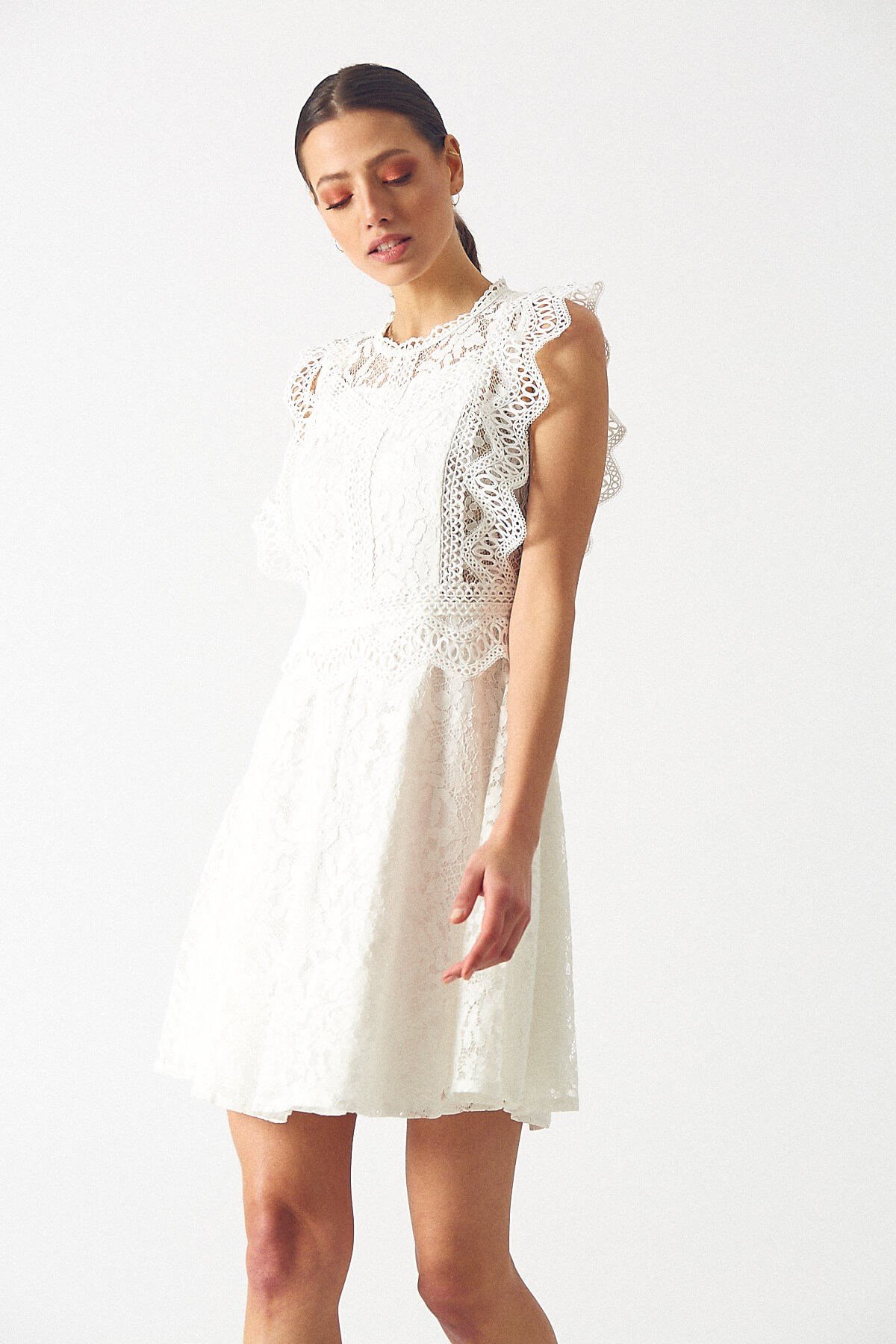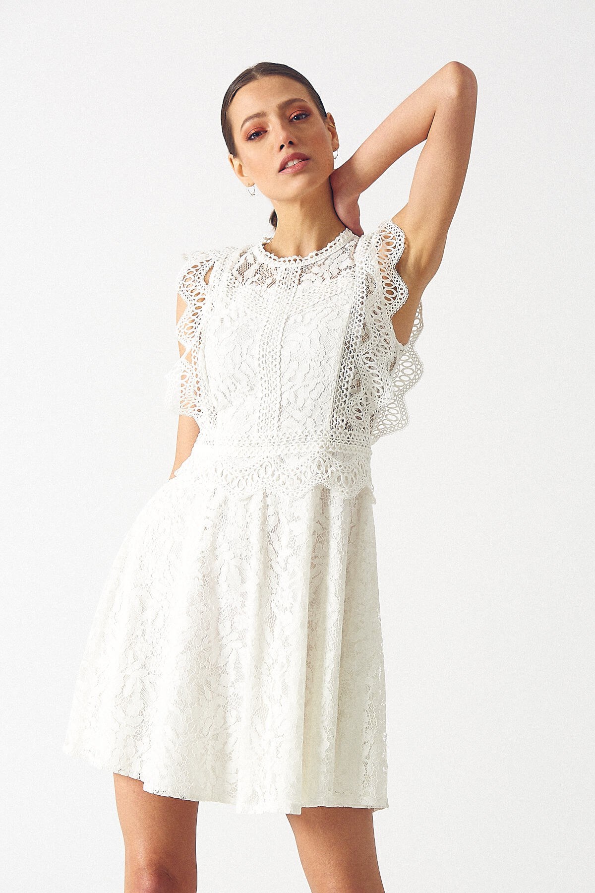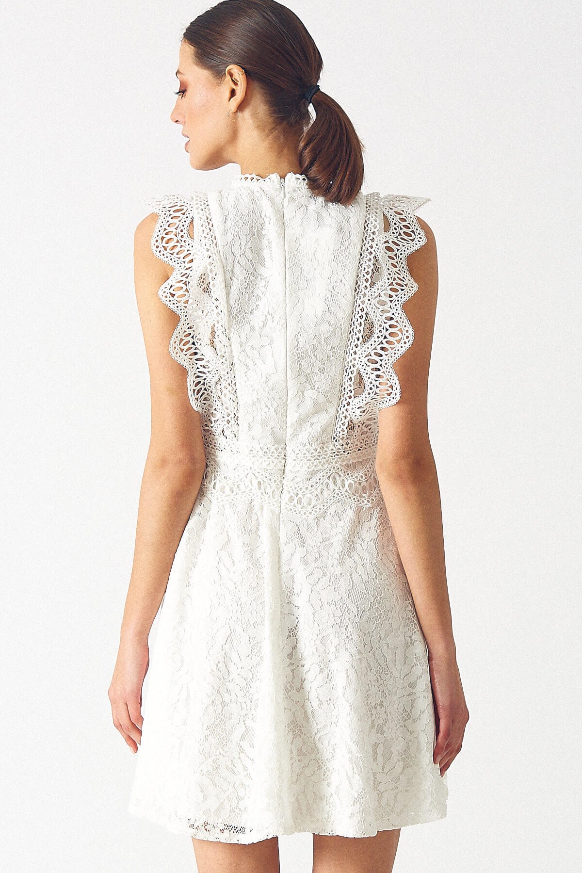 Kadın Dantel Elbise Ekru