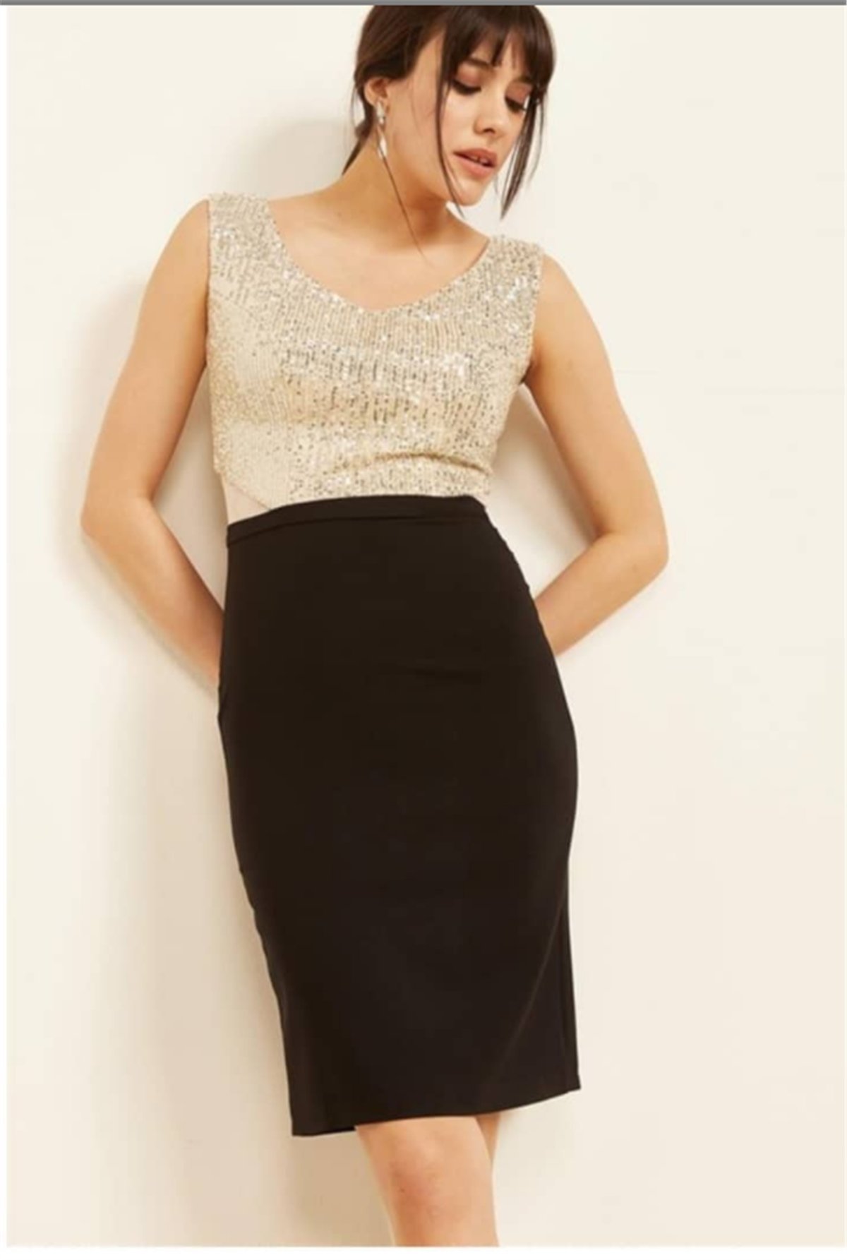 Pul Payet Abiye Elbise Gold